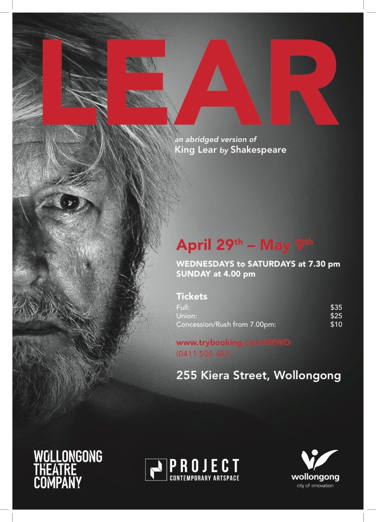 Lear Poster Official Published 06/04/2015 at 1328 × 1842 in Poster Gallery Lear, Wollongong Theatre Company 2015 Like Loading...